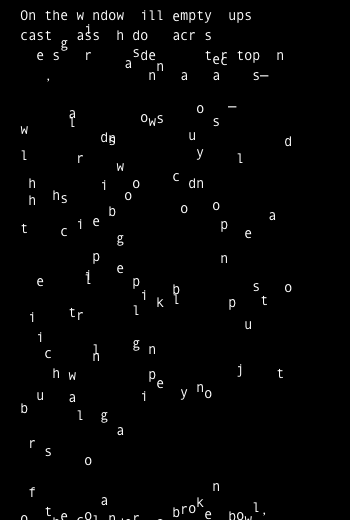 Sylvia Tomayko-Peters a new media writer and artist, studying Literary Arts and Modern Culture & Media at Brown University in Providence, RI. Her interests lie at the intersection of creative writing and digital technologies – our ongoing negotiation between paper and pixel. More of her work can be found at www.sylviatp.com.